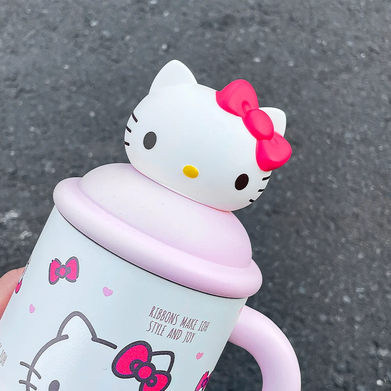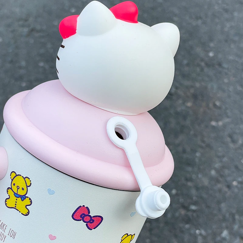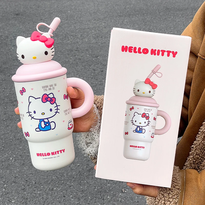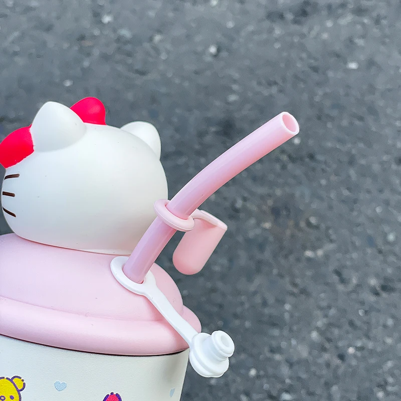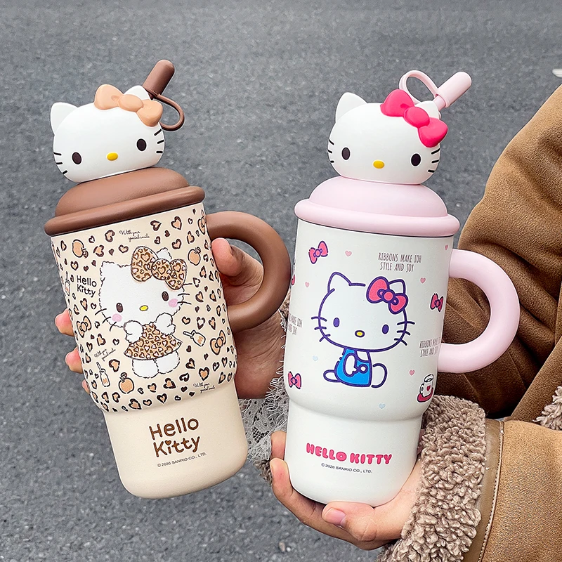 كوب حراري هيلو كيتي 650 مل – ستانلس ستيل مع قشة، كيوت ومحمول 🎀✨.