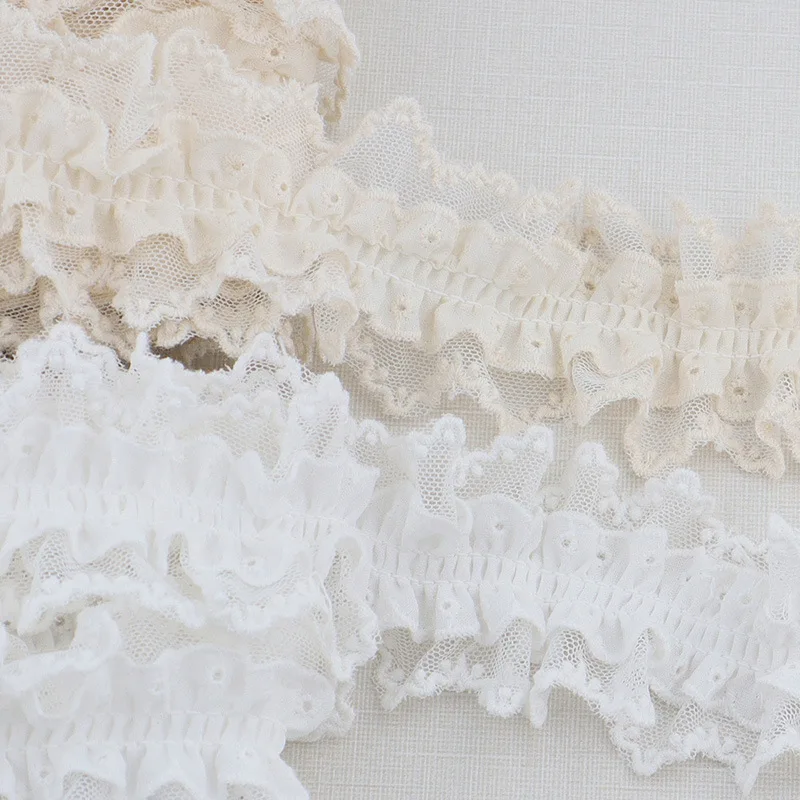 1 ياردة الدانتيل الأبيض مطوي الكشكشة زين التطريز النسيج الشريط تقليم DIY فستان الملابس أغطية الرأس لوازم الخياطة الزخرفية